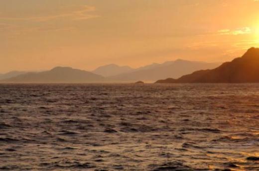 | Während der Nacht laufen wir verschiedene Häfen an. Der nächste Tag beginnt mit einem beeindruckenden Sonnenaufgang an. | |