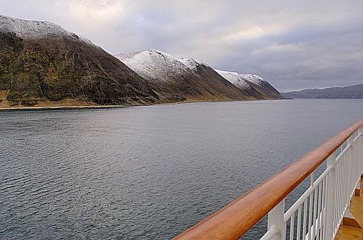 An dieser Stelle eine Anmerkung zur besten Reisezeit: Sommer oder Winter? Mitternachtsonne oder Polarlicht? Grüne Landschaft oder Schneehaube? Listenpreis oder Sonderangebot? Volles Schiff oder reichlich Platz an Bord? Weitere Gegensätze aufzuzählen wäre nicht schwer, aber eine Entscheidung zu fällen dann um so mehr. Für mich war, auch unter fotografischen Gesichtspunkten, der Herbst die richtige Wahl. | |