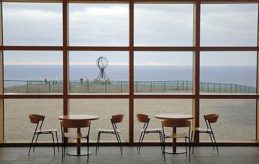 | Eisiger Wind zeigt an, daß der Nordpol nur noch ca. 2000 KM entfernt ist. Deshalb hier das Standardbild vom Nordkap aus dem Restaurant, in dem es während der "Nebensaison" Kaffe und Gebäck gratis gibt. | |