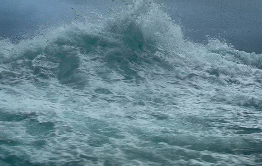 | Die See wird unruhig und Gischt fliegt entlang der Küsten. | |