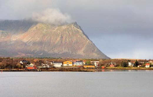 | Malerisch liegt Risoyhamn vor der schroffen Bergkulisse. | |
