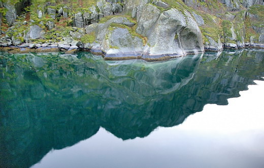 Das Wasser ist glasklar und spiegelt die Felswände, die zum Greifen nah am Schiff vorüberziehen. Am Ende weitet sich der Fjord ein wenig und unser Schiff dreht auf der Stelle gleich 2mal, damit wir die grandiose Natur wirklich geniessen können. | |