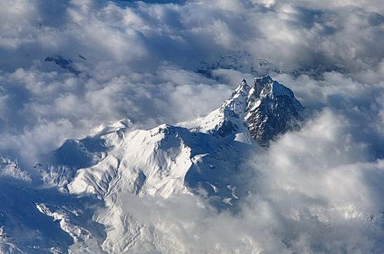 Während des Fluges nach Malaga präsentieren die Pyrenäen ihre schnee- bedeckten Gipfel über den Wolken.