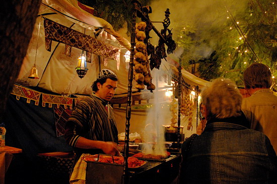 | Der Weihnachtsmarkt im Stadtzentrum erinnert an einen Bazar: Neben Gauklern, Teppichhändlern und Schriftgelehrten gibt es auch exotische Angebote für den Gaumen (und die Nase kommt dabei auch nicht zu kurz). |