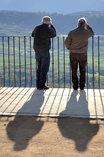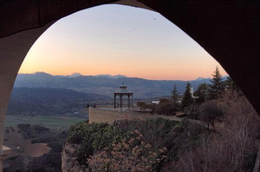 | Die Brücke von Ronda. Sie verbindet erst seit 1793 die Stadtteile von Ronda und überwindet die 150 m tiefe, messerscharfe Schlucht. Der Baumeister der Brücke kam durch einen Sturz von seiner Brücke ums Leben. Man erzählt, er habe Selbstmord begangen, weil er ein so perfektes Bauwerk nie wieder konstruieren könne. |