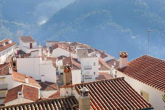 Andalusien ist berühmt für seine "Weißen Dörfer", malerisch in die Berge gebaute Siedlungen, deren weiß getünchte Häuser mit den roten Dächern sich kontrast-reich von der Umgebung abheben. Und Ronda ist idealer Ausgangspunkt für eine Tour zu den bekanntesten "Pueblos blancos". Also besorgte ich mir an der Rezeption des Paradors eine Karte und versehen mit wohlgemeinten Hinweisen machte ich mich auf den Weg in die Ronda umgebende Bergwelt. Bald führte mich meine Karte auf entlegene Nebenstrecken und am Wegrand wuchsen Apfelsinen. |