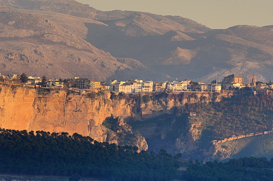 | Ronda - die Stadt mit der phantastischen Lage auf der nahezu kreisförmigen Plattform eines fast senkrecht abfallenden Plateaus - galt Lange Zeit als uneinnehmbar und war bereits Siedlungsort der Iberer. Und dann hinterließen Alle, wie bei "Malaga" beschrieben, ihre Spuren. Ronda gilt als absolutes "Muß" bei einer Andalusienreise. Das dokumentiert sich auch in der Vielzahl der Touristen, zu denen in der Vergangenheit auch Hemingway, James Joyce und Rainer Maria Rilke gehörten (um nur einige zu nennen). |