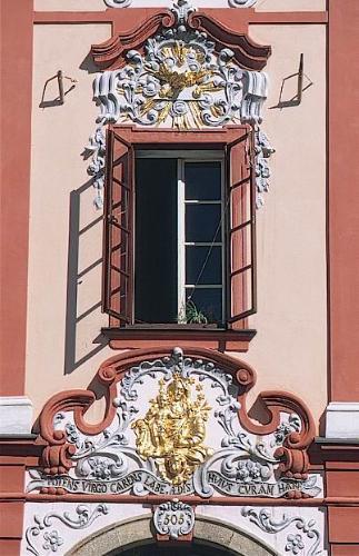 | Fenster am Marktplatz (war da nicht was mit "Fenstersturz"?) ja - aber nicht an diesem Fenster: Informationen gibt´s im Touristen-Büro gleich gegenüber |
